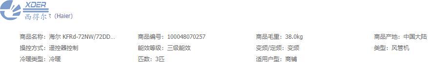 海爾風(fēng)管機KFRd-72NW/72DDA83
